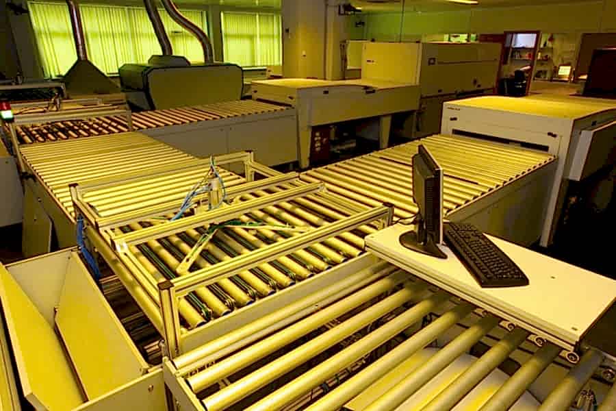 Экспонированные пластины автоматически обрабатываются в проявочных процессорах Glunz & Jensen. Если необходимо увеличить тиражестойкость пластин для печати больших тиражей, то пластины подвергаются высокотемпературной обработке в печи для обжига офсетных «Пин-ап» Перед установкой на печатную машину пластины пробиваются и загибаются при помощи автоматической системы 2B Praezision. Все перемещения пластин от экспонирующих аппаратов до их выдачи печатникам контролируются и осуществляются посредством системы конвейеров от 2B. Высокая степень автоматизации увеличивает продуктивность системы в целом и снижает вероятность человеческой ошибки.